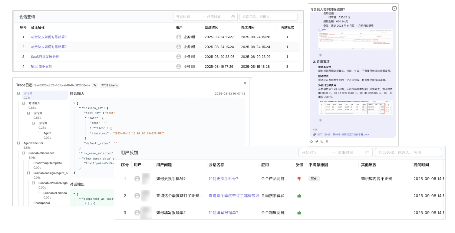 基于公司制度、财务规则和产品文档的知识库,支持自然语言多轮问答,涵盖报销制度、预算规则、产品使用指南等。