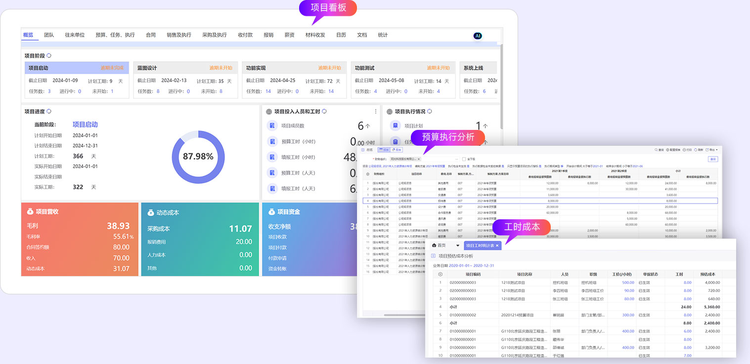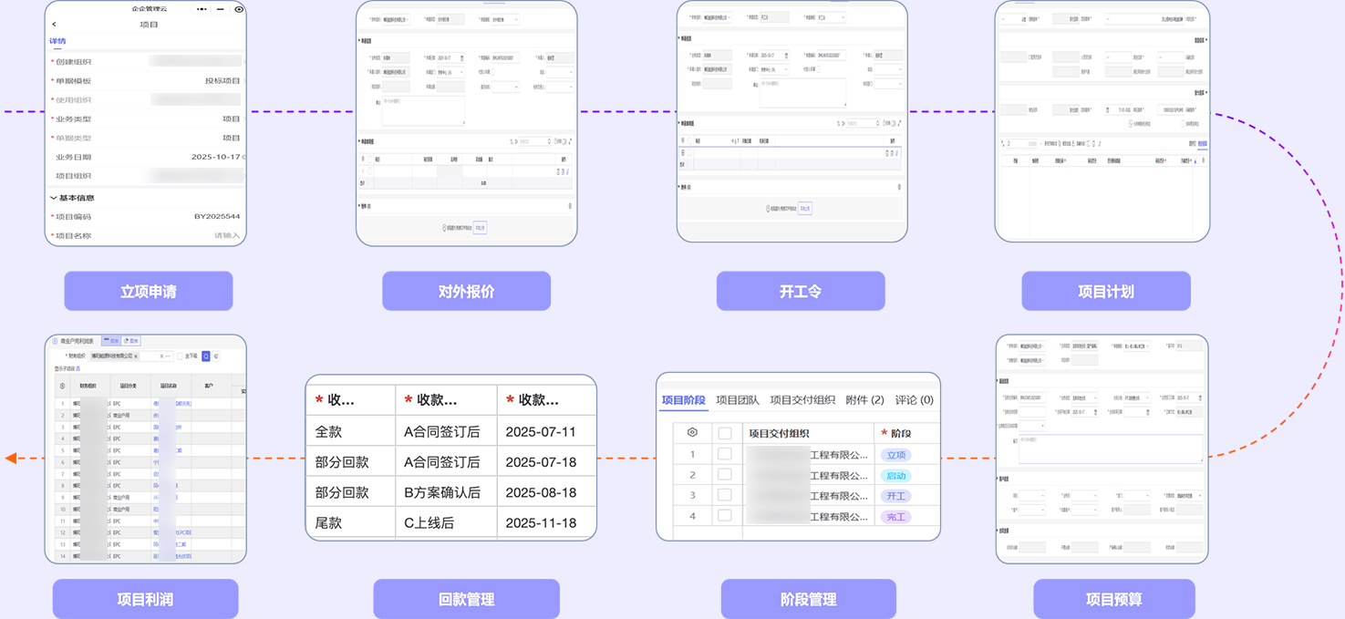 将项目从商机、立项、踏勘设计,到预算、报价、中标、施工、验收、回款的全过程全部纳入同一平台,实现信息、流程与责任的全面统一。项目状态不再依赖口头询问或分散台账,管理层可随时掌握真实进度,提前发现风险,实现跨部门、跨阶段的高效协同,让每个项目都做到“过程透明、执行可控”。